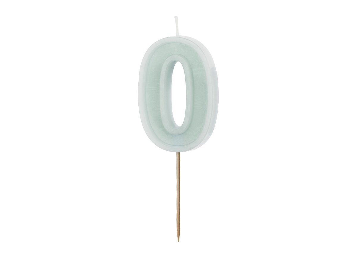 Candela di compleanno Figura 0 in colore menta chiaro.
