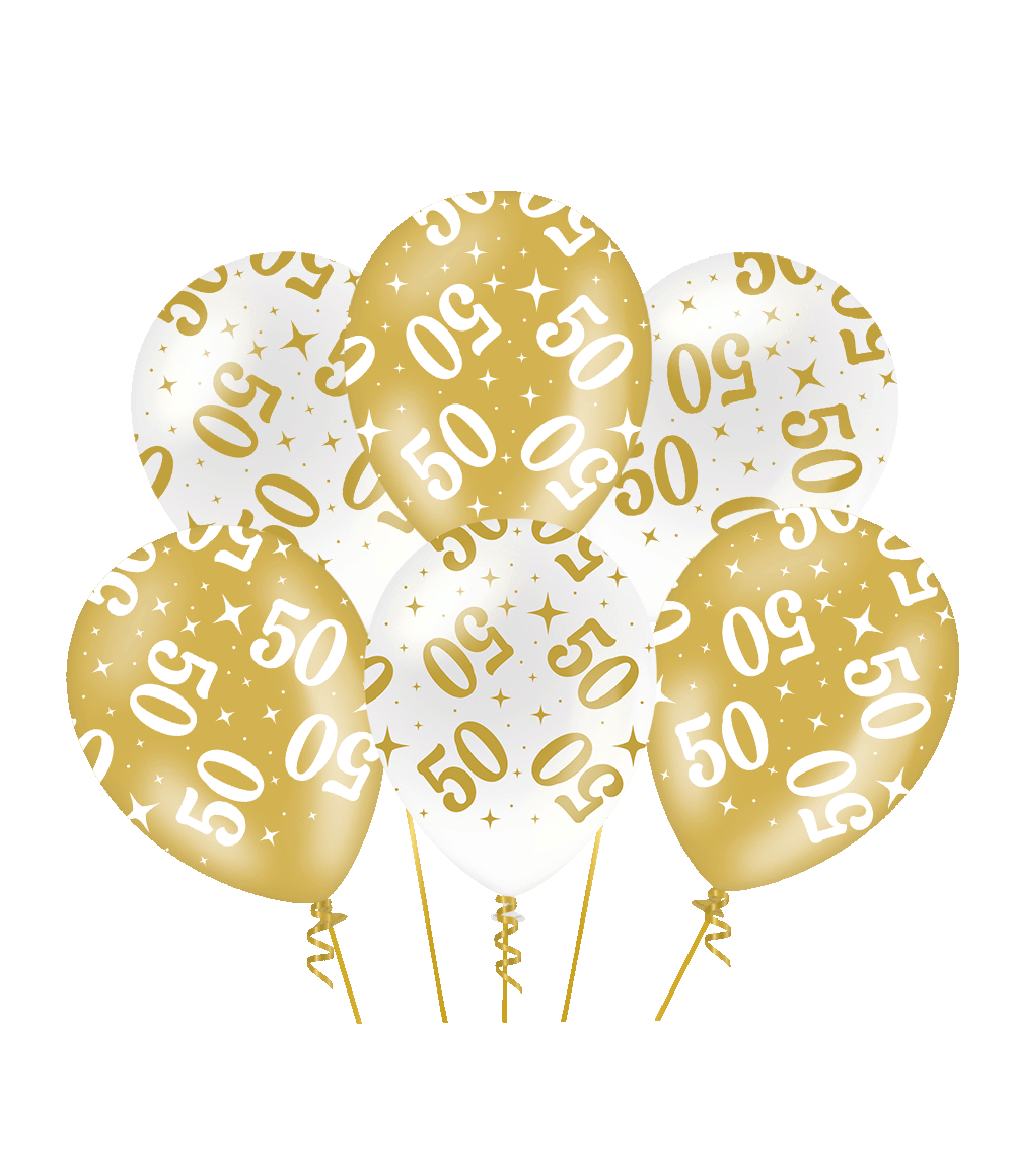 Palloncini 50 anni oro bianco 30 cm 6 pezzi