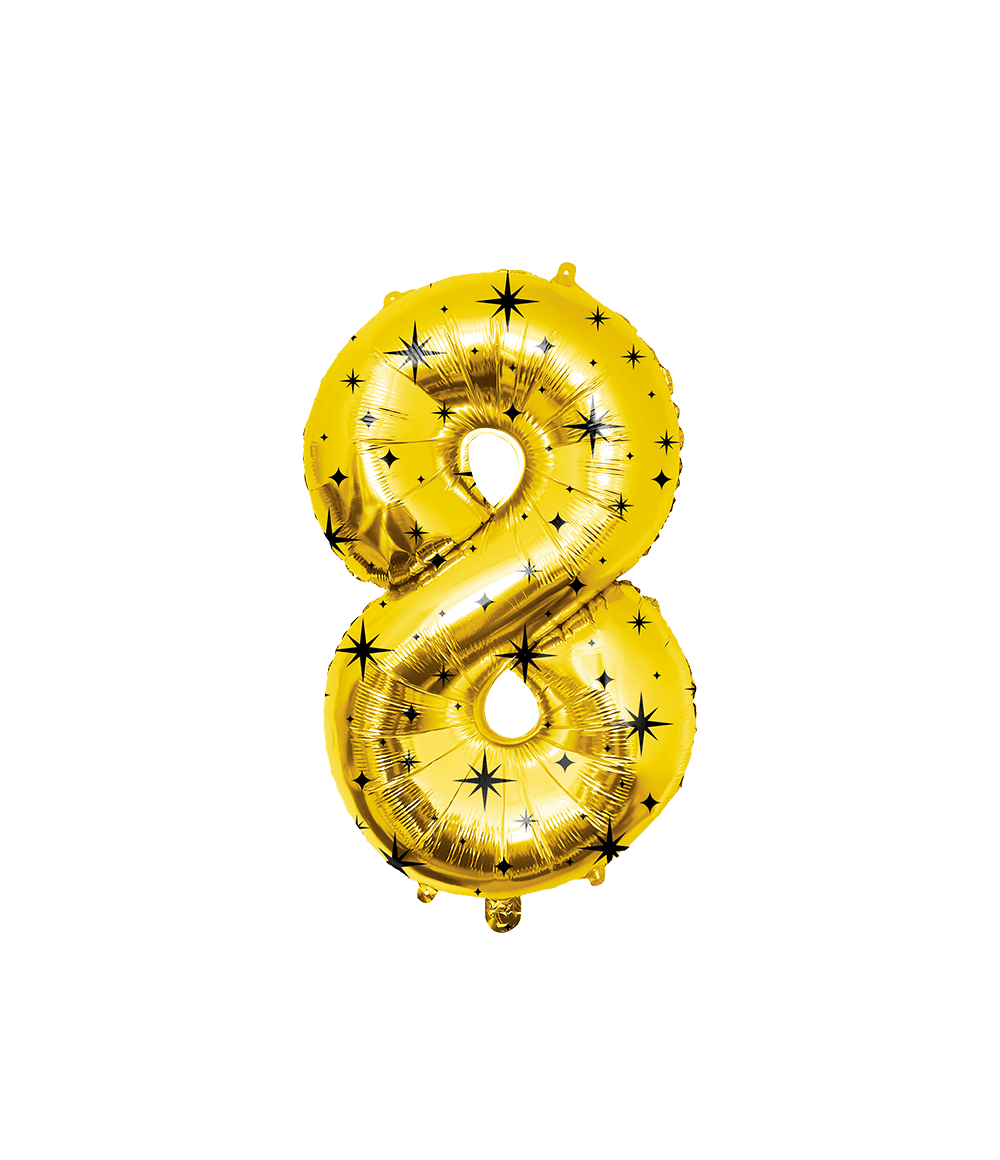Palloncino di figura 8 anni Oro Nero Stelle 86 cm