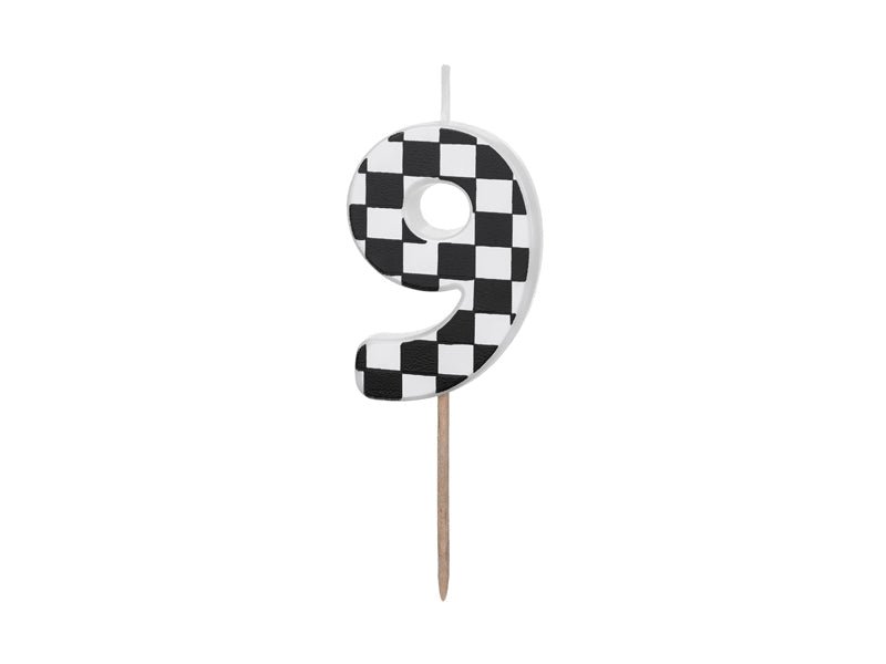 Candela di compleanno numero 9 con motivo a bandiera a quadretti, dimensioni circa. 5,5 cm, miscela