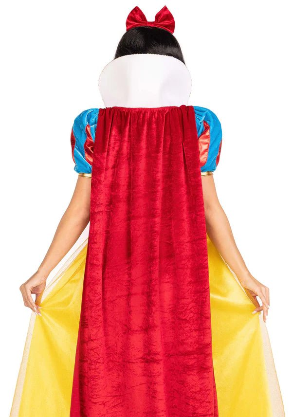 Vivi la magia delle fiabe con questo incantevole costume da Biancaneve Deluxe in 3 pezzi! Questo elegante ensemble comprende un classico abito da ballo in velluto e raso impreziosito da bordature dorate intrecciate e da un maestoso colletto a spillo. Il mantello in velluto staccabile aggiunge un tocco regale, mentre il grazioso cerchietto con fiocco completa il tuo look da principessa. Perfetto per feste in maschera, temi fiabeschi o per rivivere la tua storia preferita! 🌟💖