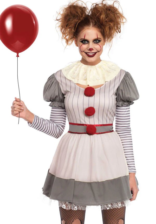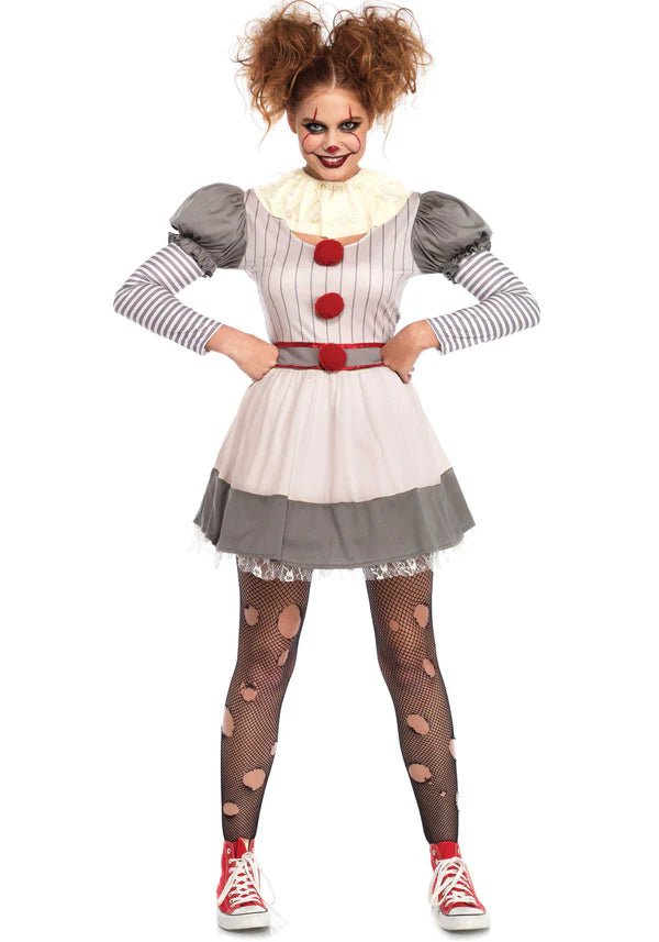 Mostra il tuo lato inquietante con il costume da Clown Inquietante in 2 pezzi di Leg Avenue! Questo costume comprende un vestito a righe con pompon e un colletto in pizzo, per un mix perfetto di carineria e inquietudine. Perfetto per Halloween o per qualsiasi festa a tema spaventoso, questo costume ti farà diventare la star della festa!🎪 👻