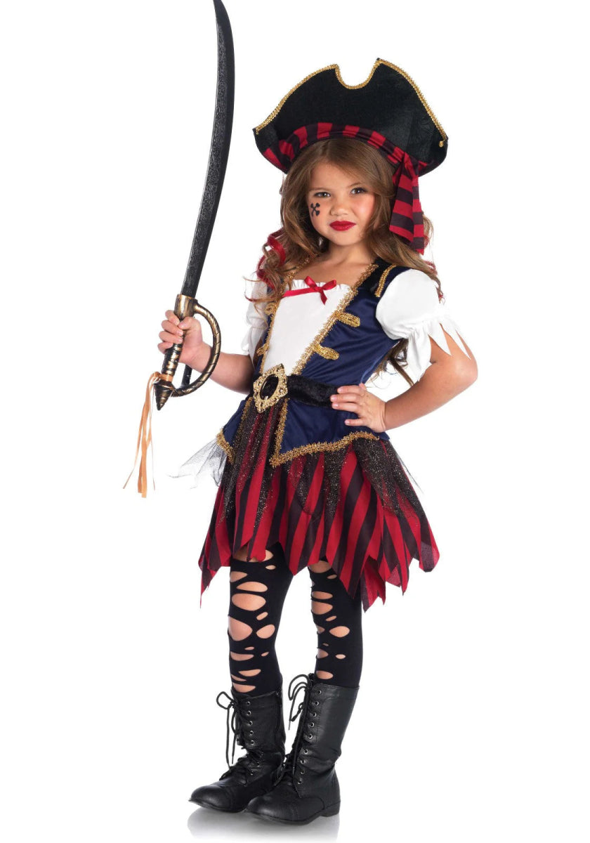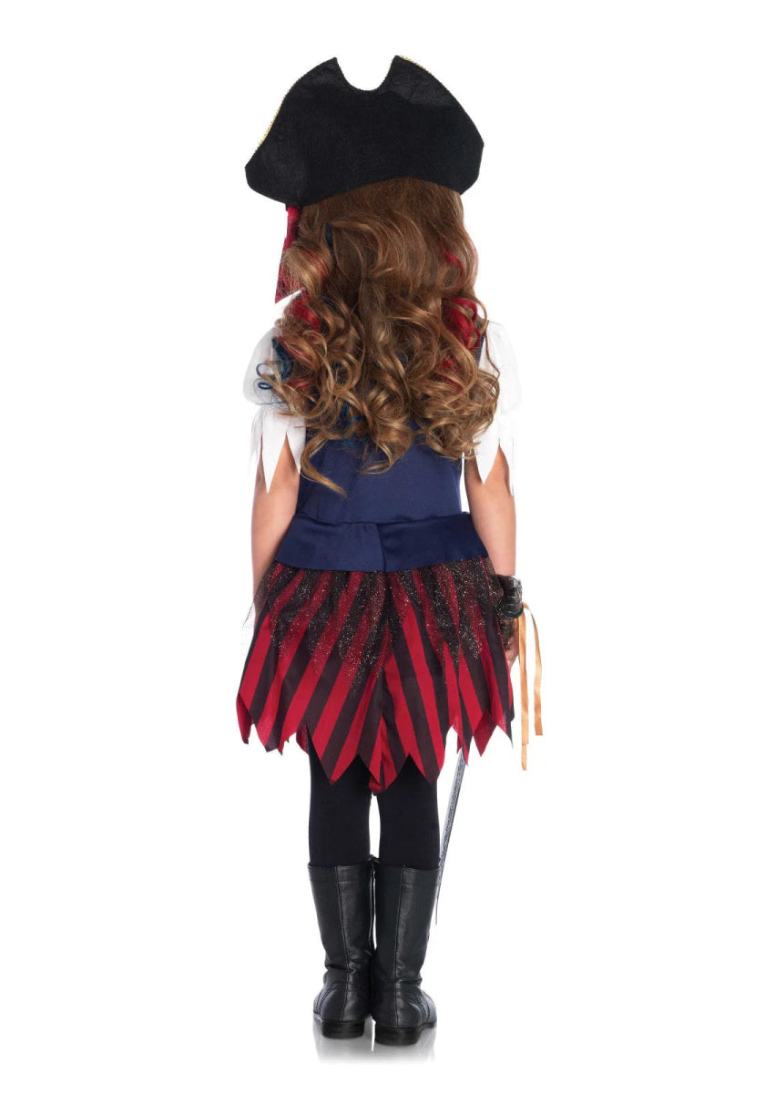 Le bambine diventano grandi avventuriere con questo Costume da Pirata dei Caraibi. Questo set da pirata in 2 pezzi comprende un abito decorato in oro con cintura annessa e un cappello da pirata abbinato con sciarpa. Perfetto per diventare il capitano della tua nave! ⚓🌊