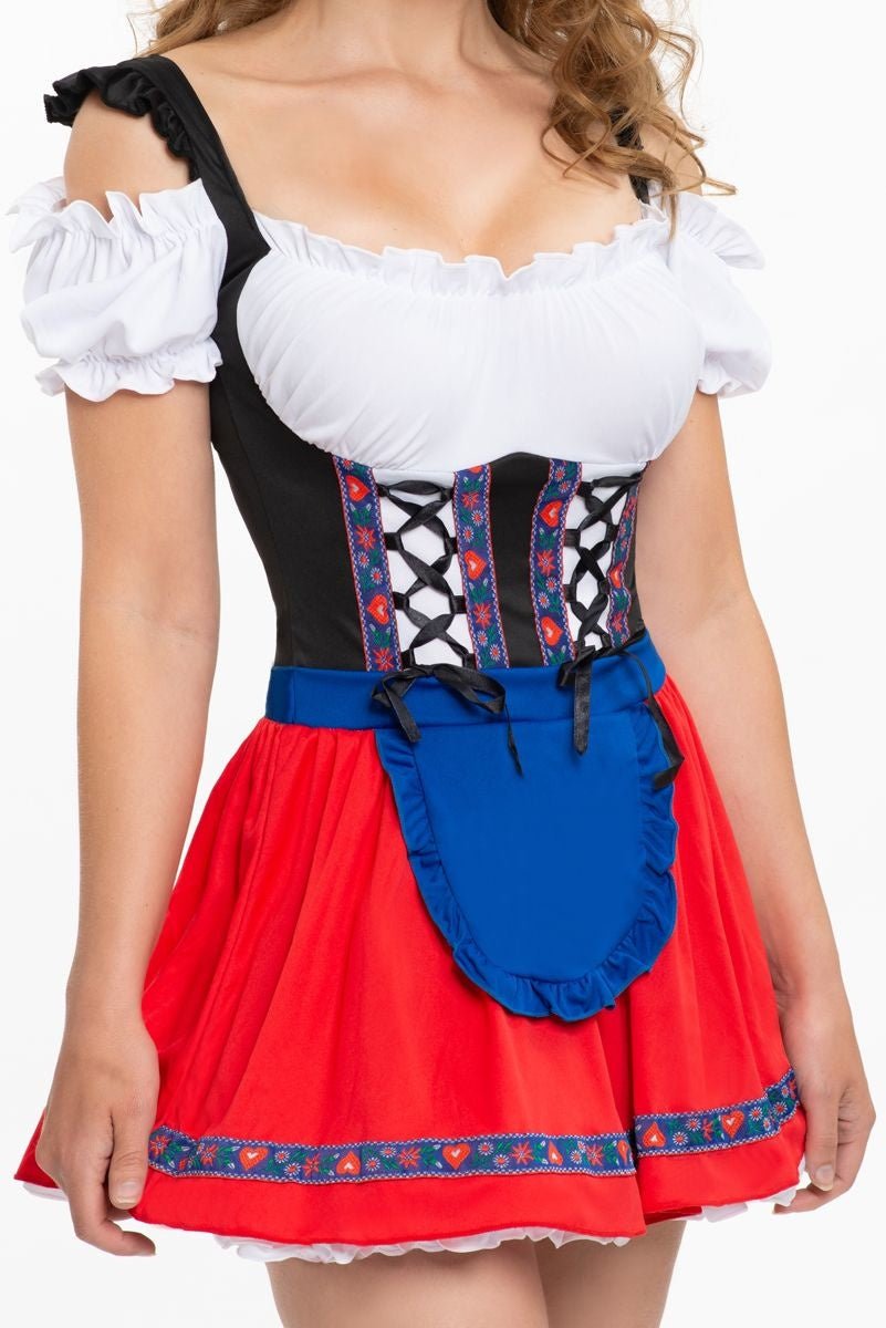Abito Dirndl Oktoberfest Grembiule Rosso Blu