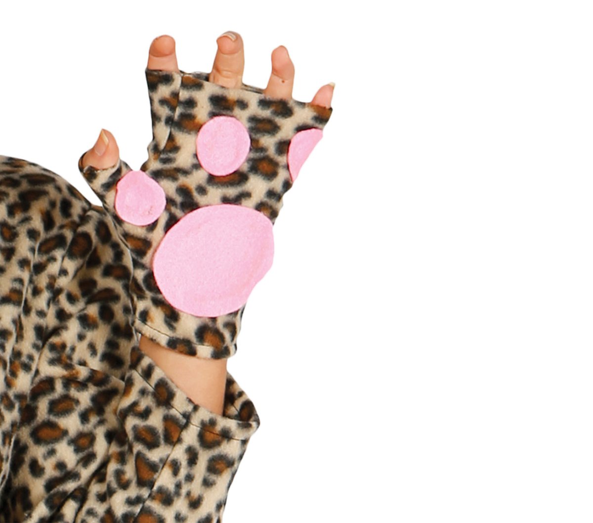 Contenuto: abito leopardato con cappuccio e coda e guanti