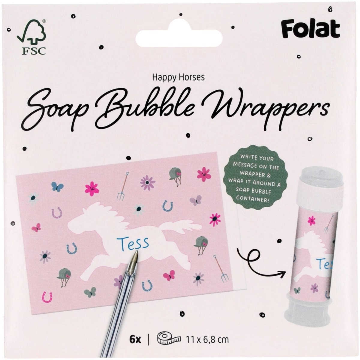 Per ogni fan dei cavalli un soffiatore di bolle. Adesivi soffiabolle - Cavallo felice -6 pezzi. Contenuto: 6 adesivi a bolle d'aria. Da utilizzare per esempio durante le seguenti occasioni di festa: Festa per bambini, compleanno, festa a tema. Tutti hanno una bolla di sapone. Questi adesivi per bolle di sapone a forma di cavallo si adattano a una bottiglia di bolle di sapone standard e hanno una dimensione di: 11 x 6,8 cm. Sono stampati su un lato. Questi adesivi per bolle di sapone appartengono alla collezione Happy Horses di