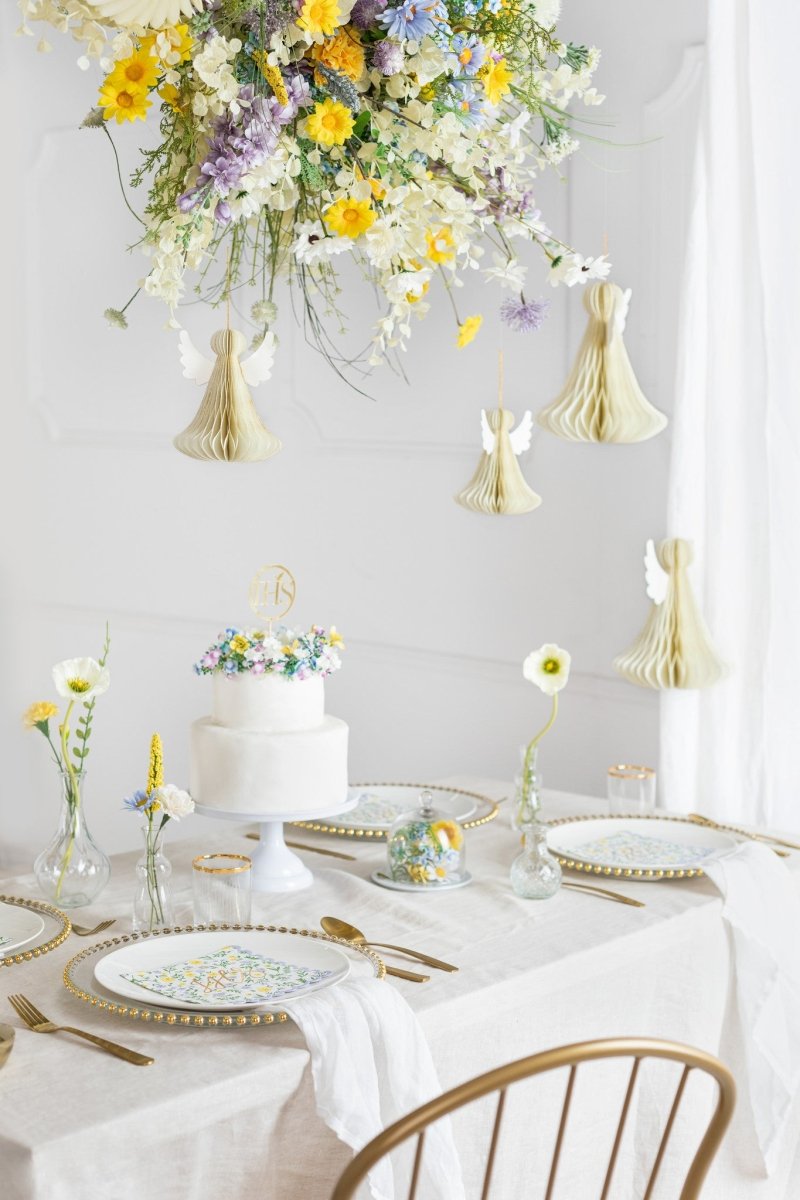 Decorazione di carta a nido d'ape Avorio con glitter oro, altezza circa 15 cm