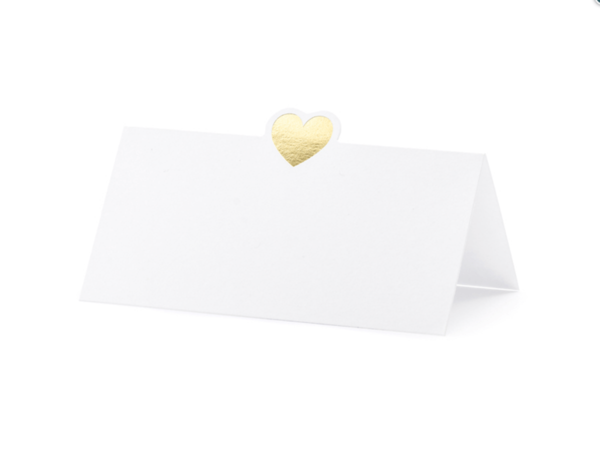 Contenuto:Segnaposti in carta bianca con cuore in metallo dorato, dimensioni dopo l'assemblaggio circa. 10 x 5cm. (1 PKT/10 pezzi)