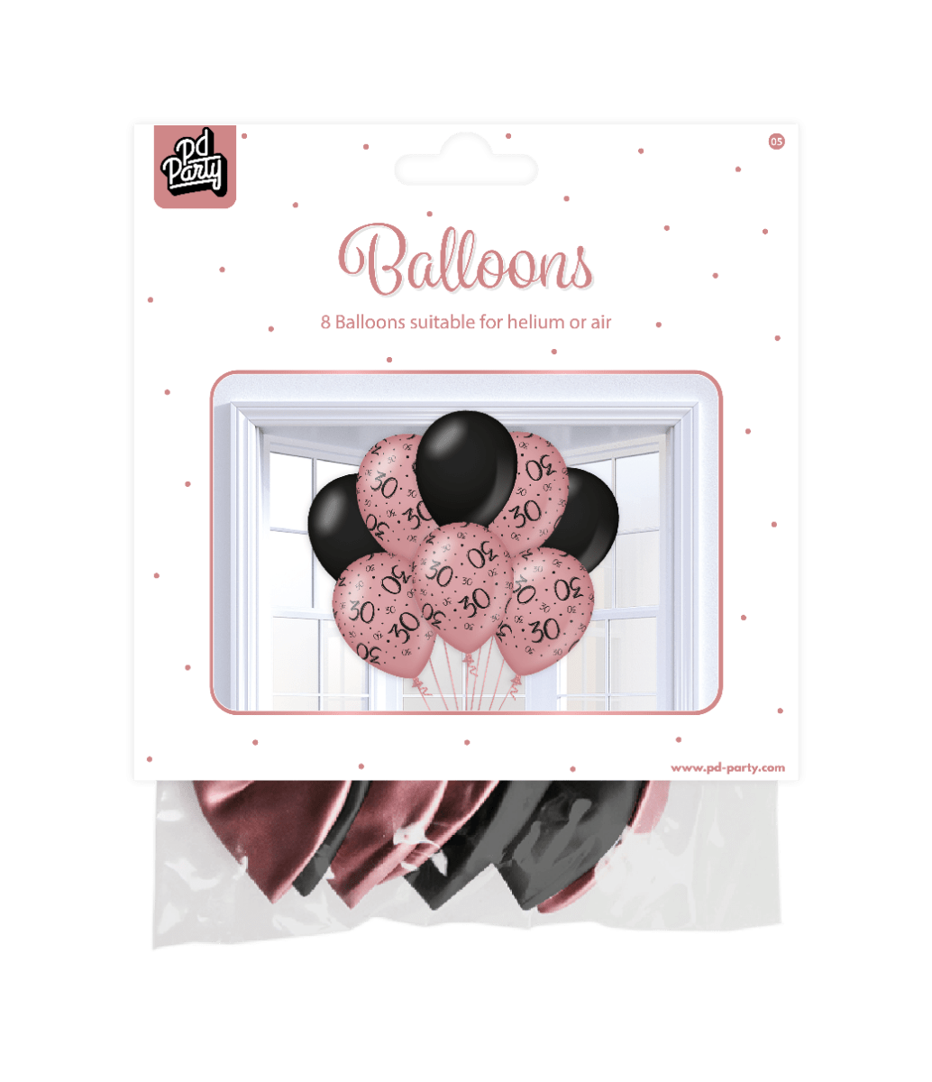 Palloncini 30 anni rosa neri 30cm 8pz