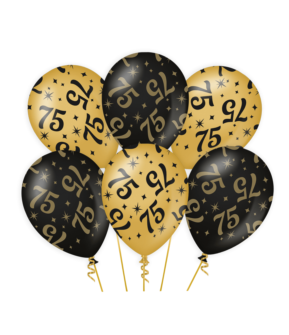 Palloncini 75 anni oro nero 30cm 6pz