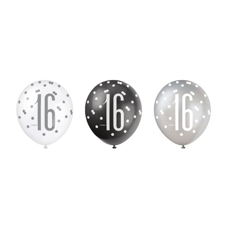 Contenuto della confezione:Palloncini 16 Anni Puntini Neri 30cm 6pz