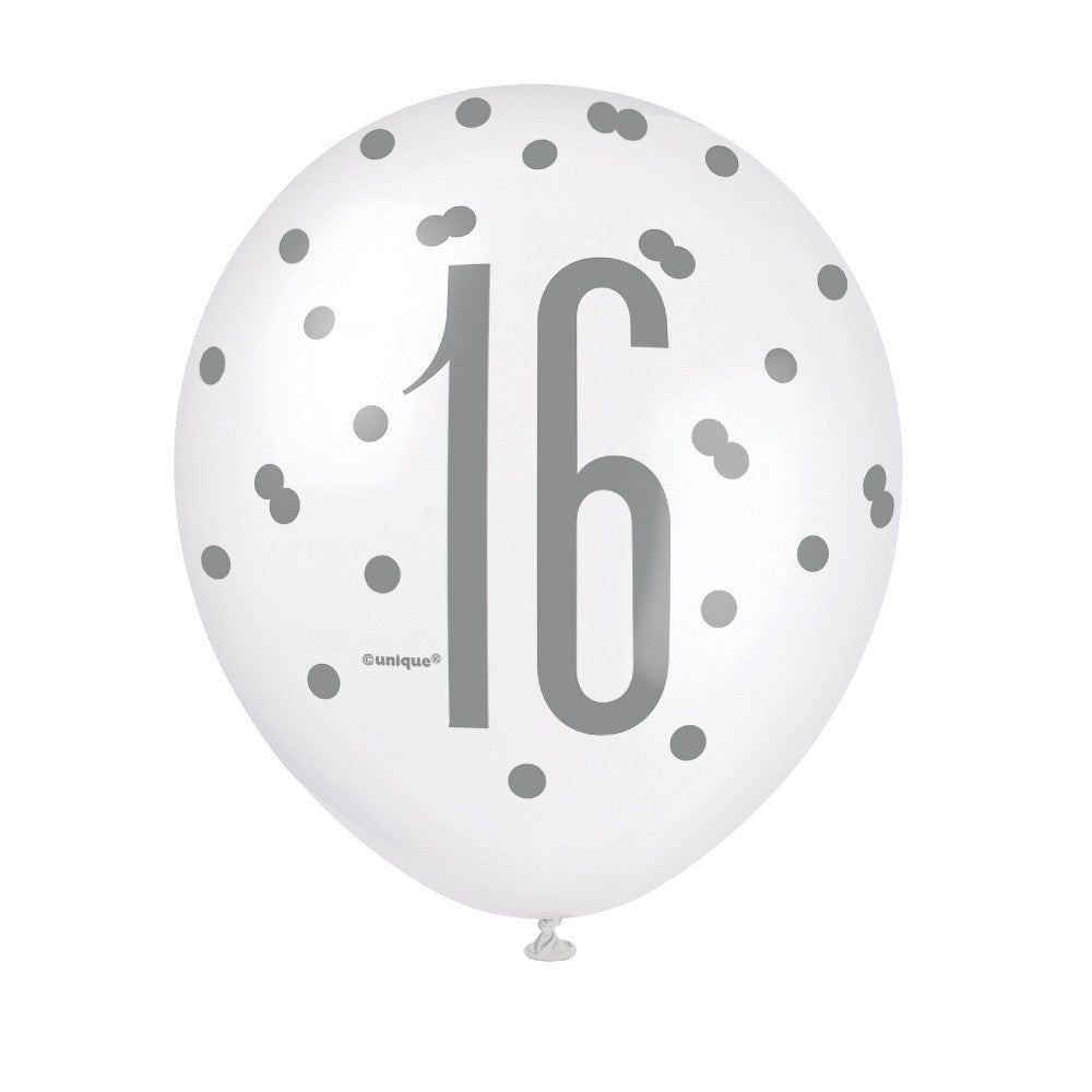 Palloncini 16 anni a pois blu 30 cm 6 pezzi