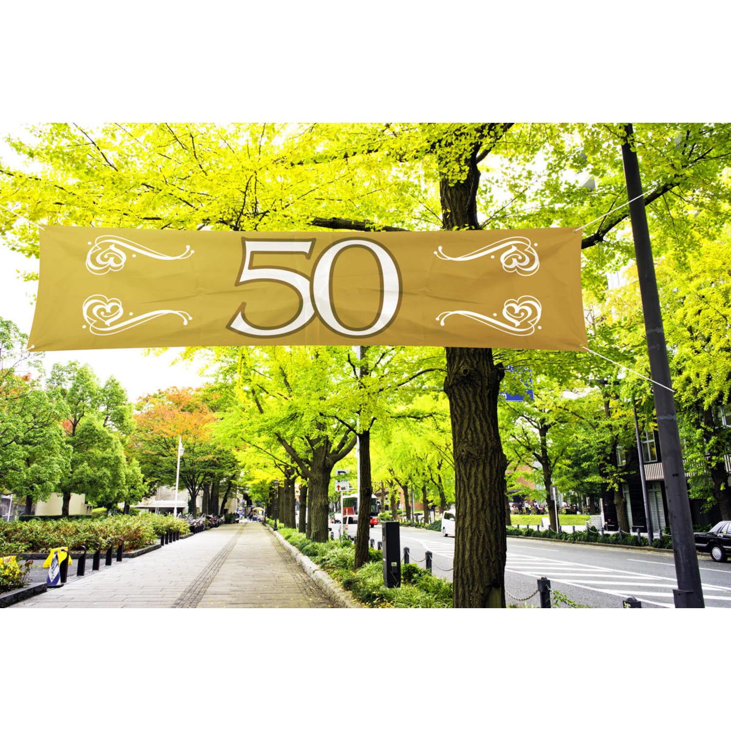 Striscione 50 anni anniversario d'oro - 180x40cm. Contenuto: 1 striscione. Colore: Oro. Ad esempio, da utilizzare durante le seguenti occasioni di festa: Compleanno, Anniversario. Dimensioni di questo articolo: 180x40cm. Questo articolo è realizzato in poliestere.
