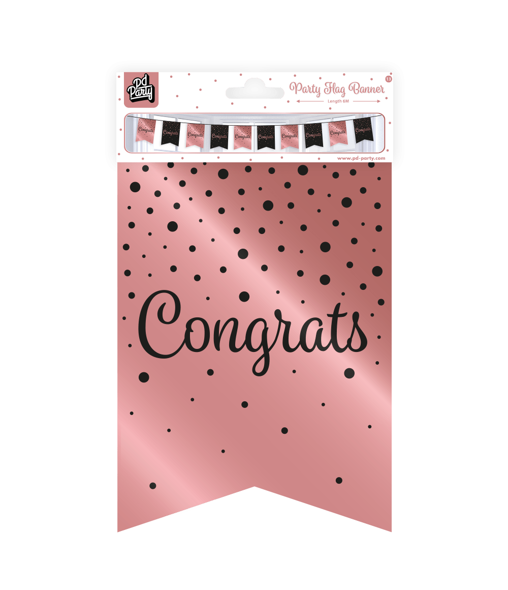 Striscione Congratulazioni Rosa Nero 6m