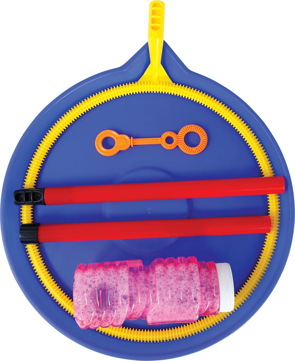 Questo allegro set da 6 pezzi per soffiare le bolle assicura ore di divertimento. Il set comprende un vassoio, un soffiatore di bolle, un bastone per soffiare le bolle, un anello per soffiare le bolle e una maniglia, così potrai iniziare subito a fare grandi bolle scintillanti. Realizzato in robusto PVC e disponibile in allegri colori