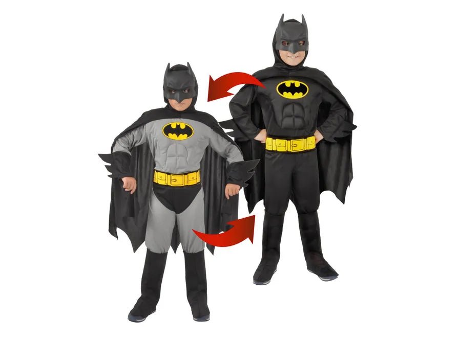Con questo costume da Batman reversibile, i bambini sperimenteranno il doppio del divertimento da supereroe.