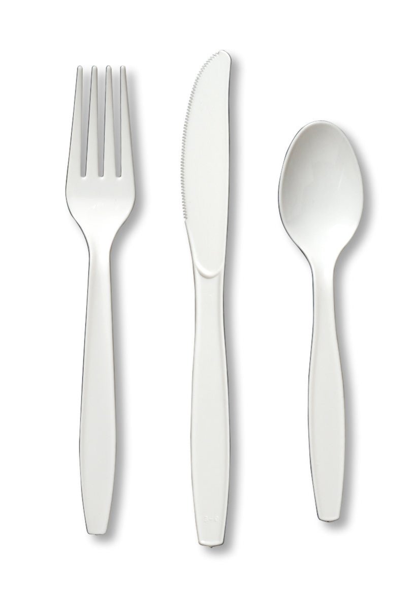Posate bianche in plastica 24 pezzi