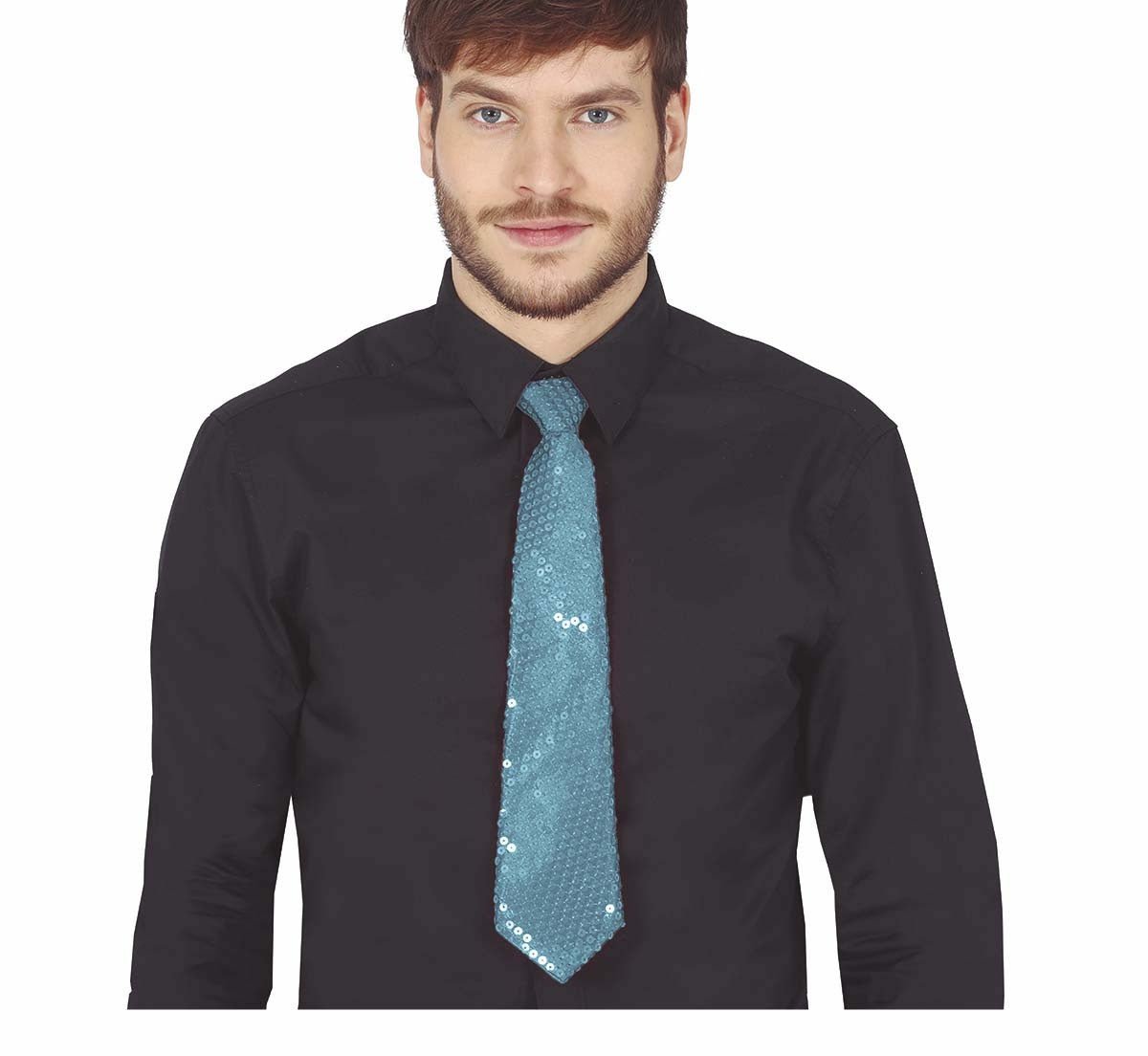 Cravatta azzurra con paillettes 35 cm
