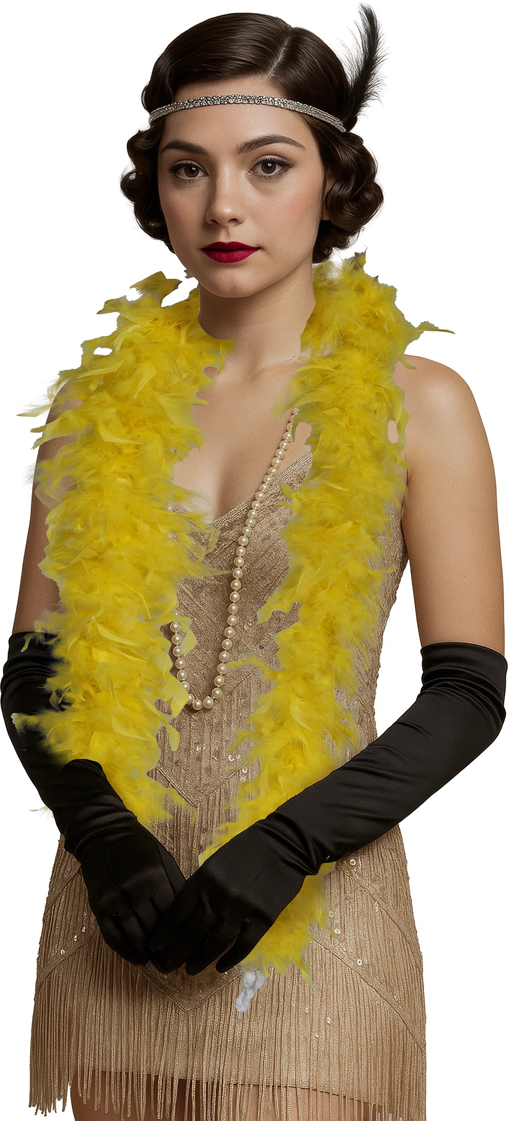 Porta il sole e l'energia al tuo abbigliamento con questo boa di piume giallo. Ideale per carnevali, feste in maschera, sfilate o spettacoli teatrali. Il boa è leggero e morbido e aggiunge allegria e brio a qualsiasi look.