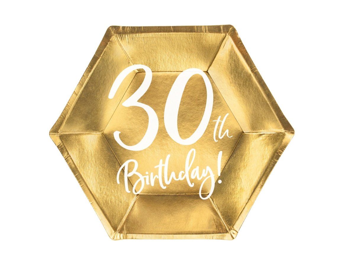 Contenuto: Piatti di carta di colore oro metallizzato con scritta bianca 30° ! (1 PKT/6 pezzi)