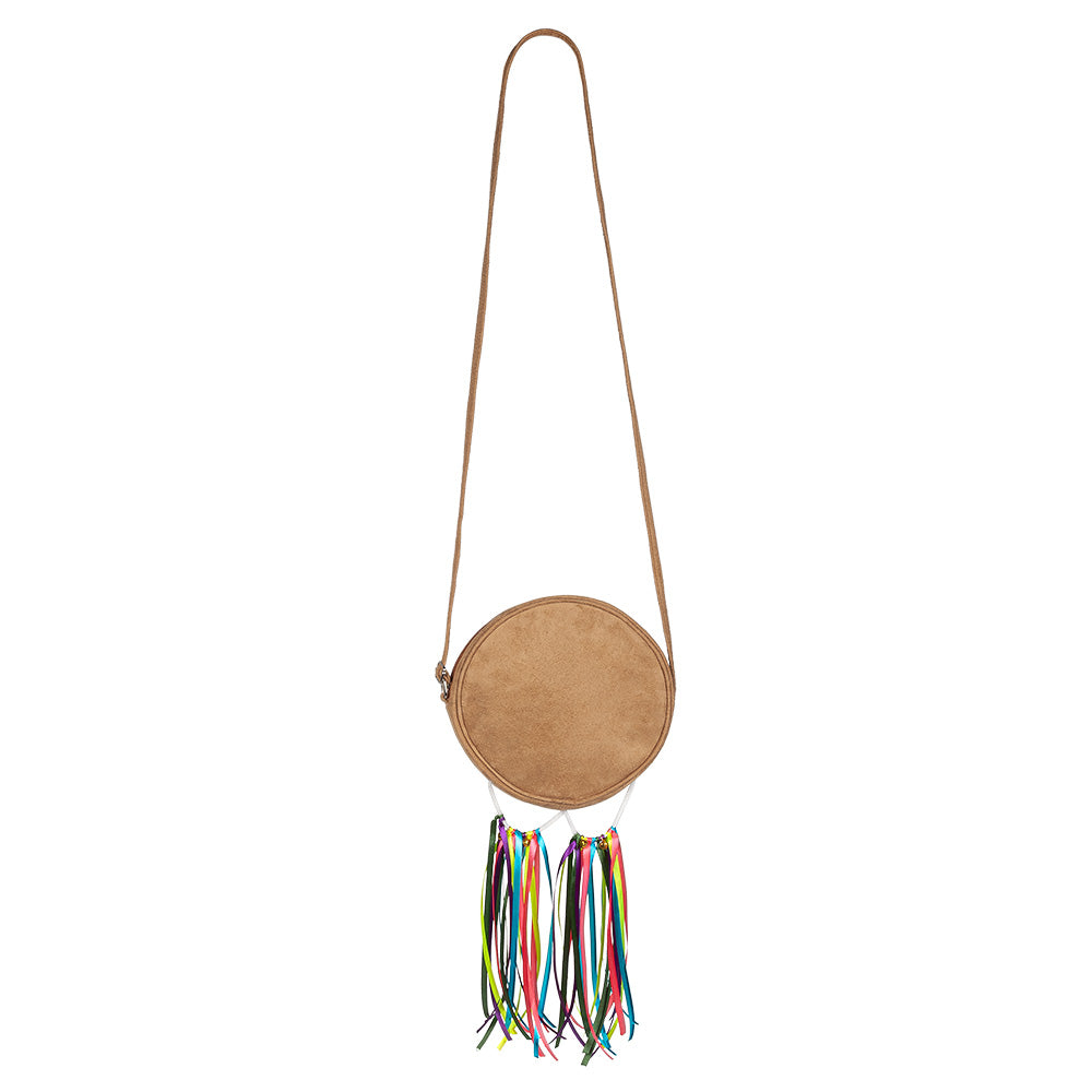 Torna agli anni del flower power con questa colorata borsa a tracolla hippie. Il design rotondo con il segno della pace e i nastri allegri dona a qualsiasi outfit un'atmosfera giocosa e retrò anni '70. Perfetta per i festival, le feste a tema o le giornate estive
