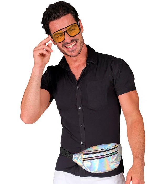 Con questo marsupio olografico argentato, la tua attenzione è garantita.