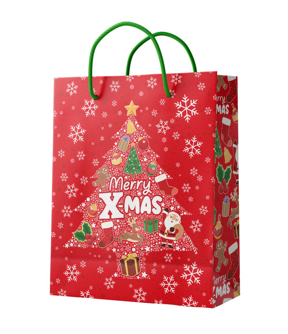 Incarta i tuoi regali di Natale con stile grazie a questa grande borsa regalo rossa con motivi natalizi, come renne, fiocchi di neve e il testo Merry Christmas. L'allegro design rende la borsa un vero e proprio richiamo visivo sotto l'albero di Natale.