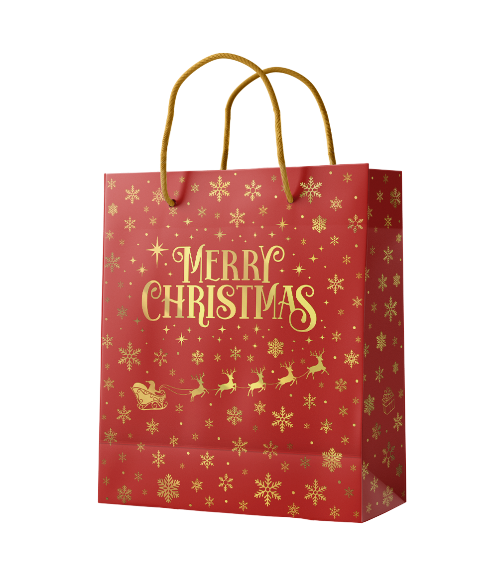 Rendi i tuoi regali di Natale ancora più festosi con questa borsa regalo Merry Christmas di colore rosso. Il robusto materiale in carta e plastica assicura che i tuoi regali siano incartati in modo bello e sicuro. Il formato medio è ideale per i regali di piccole e medie dimensioni e dona un aspetto immediatamente festoso sotto l'albero di Natale