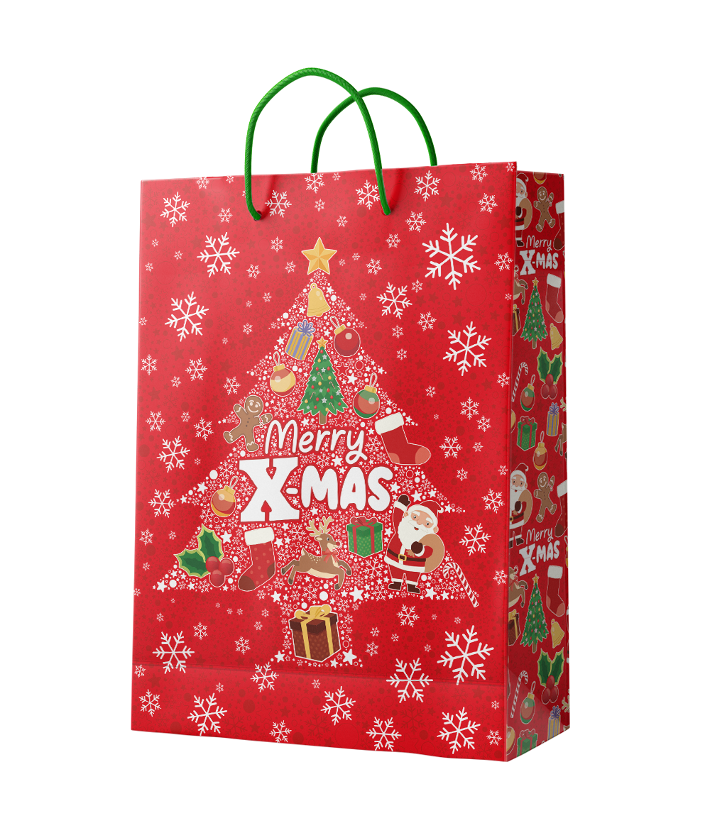 Rendi i tuoi regali di Natale ancora più festosi con questa spaziosa Borsa regalo X-mas. Il sacchetto è realizzato in carta e plastica robusta e ha dimensioni generose, che consentono di impacchettare facilmente i regali più grandi. Perfetta per impacchettare i regali di Natale con stile e senza problemi
