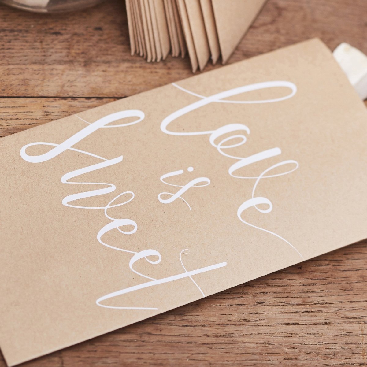 Aggiungi il tocco perfetto al tuo ricevimento con i nostri sacchetti di caramelle per i ringraziamenti di nozze in carta kraft rustica. Gli ospiti di tutte le età adoreranno riempire questi sacchetti con deliziosi dolcetti: un vero e proprio regalo per viziare i tuoi invitati. Le strisce bianche faranno un figurone sul tuo tavolo del tesoro: assolutamente irresistibili