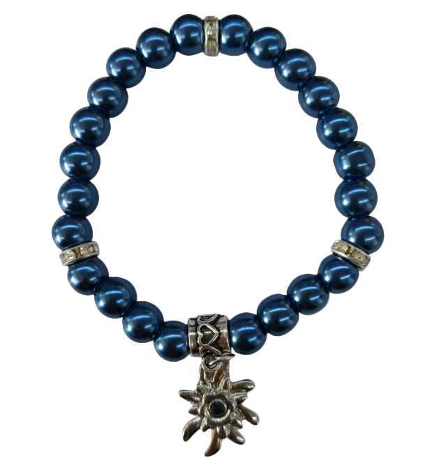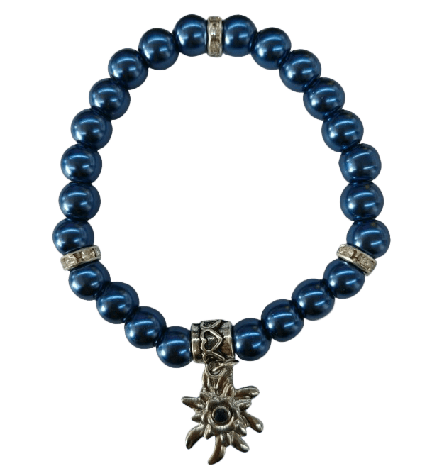 Aggiungi un tocco di eleganza a qualsiasi outfit con questo bracciale blu scuro con perle e stelle alpine. Il design elegante rende il braccialetto adatto per essere indossato tutti i giorni o come regalo speciale.
