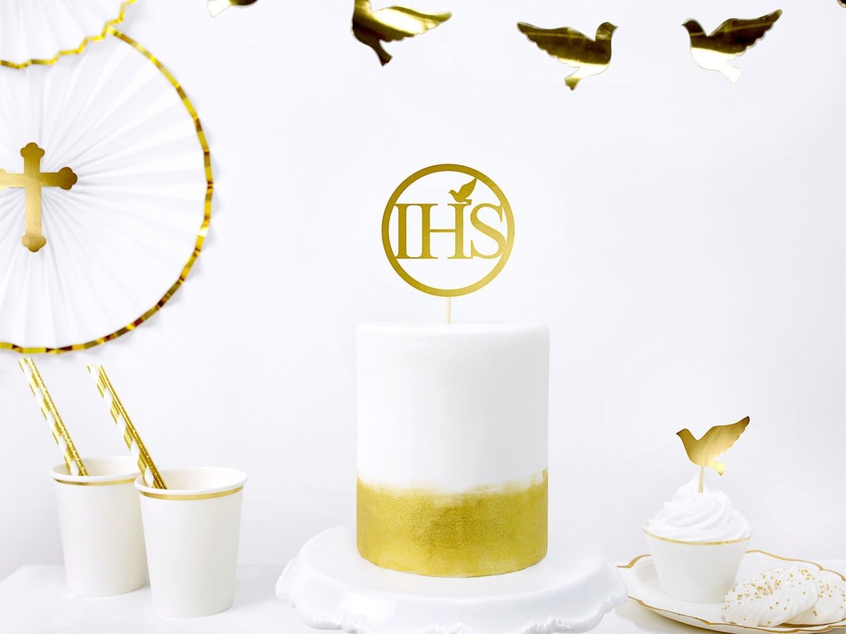 Contenuto della confezione: Cake topper Comunione IHS Oro 22cm