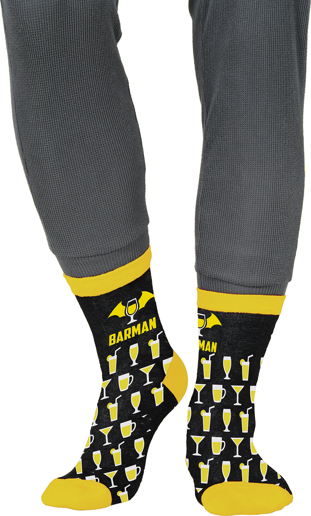 Eleganti e comodi calzini in nero e giallo, perfetti per l'uso quotidiano o come simpatico regalo per baristi e bariste.