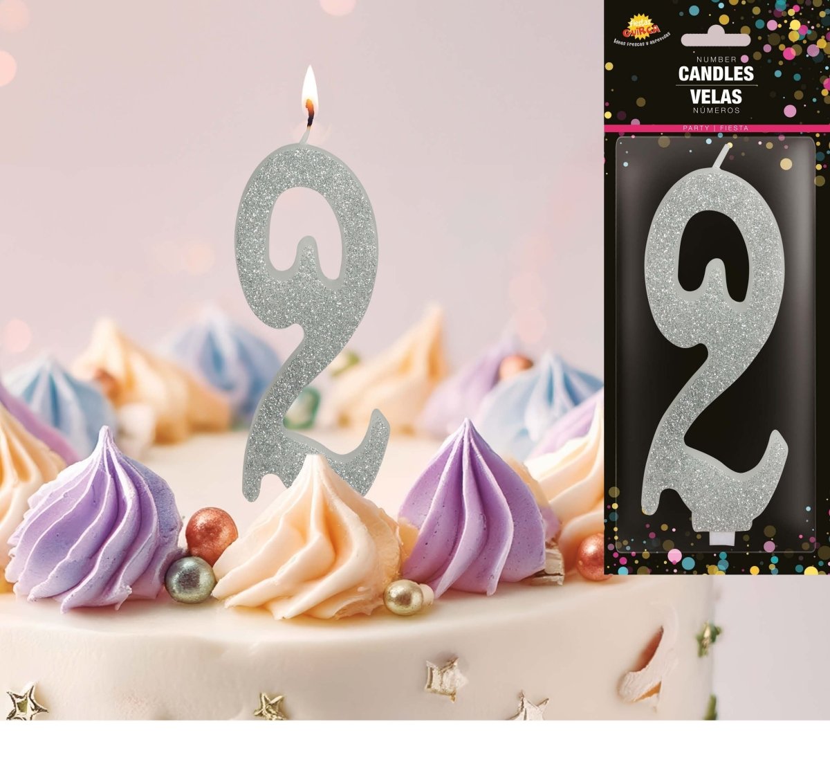 Candela Argento 2 Anni Glitter 12,5 cm