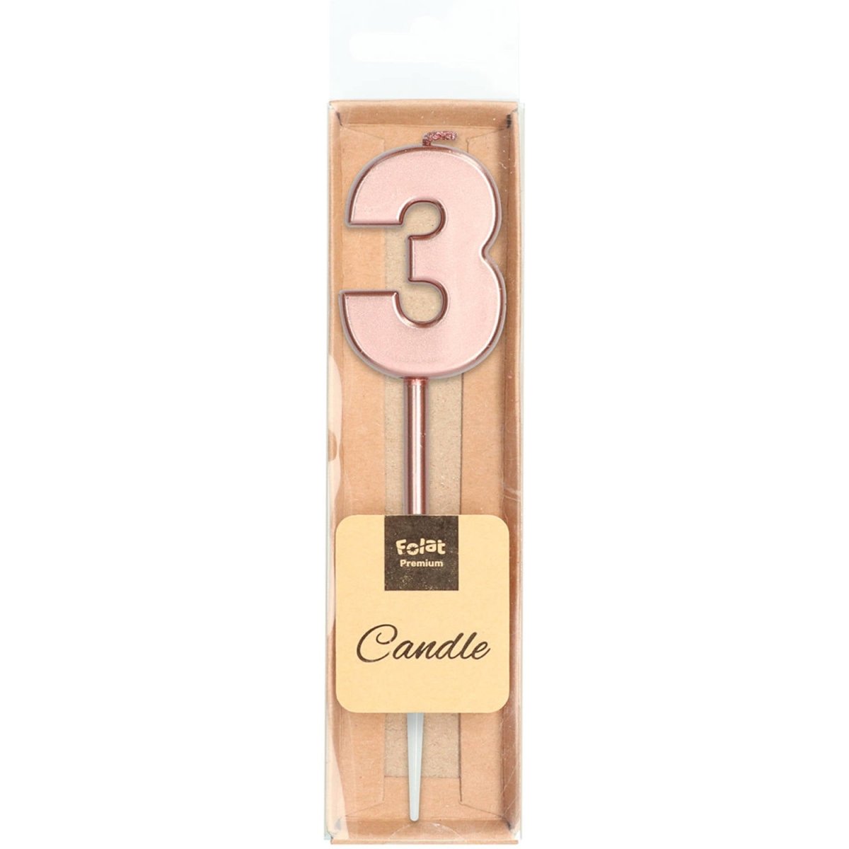 Candela Numero 3 Oro Rosa Metallico. Contenuto: 1 candela. Colore: oro rosa. Da utilizzare, ad esempio, durante le seguenti occasioni di festa: Compleanno, Anniversario e Festa per bambini. Dimensioni: 14 cm di altezza. L'articolo è realizzato in cera.