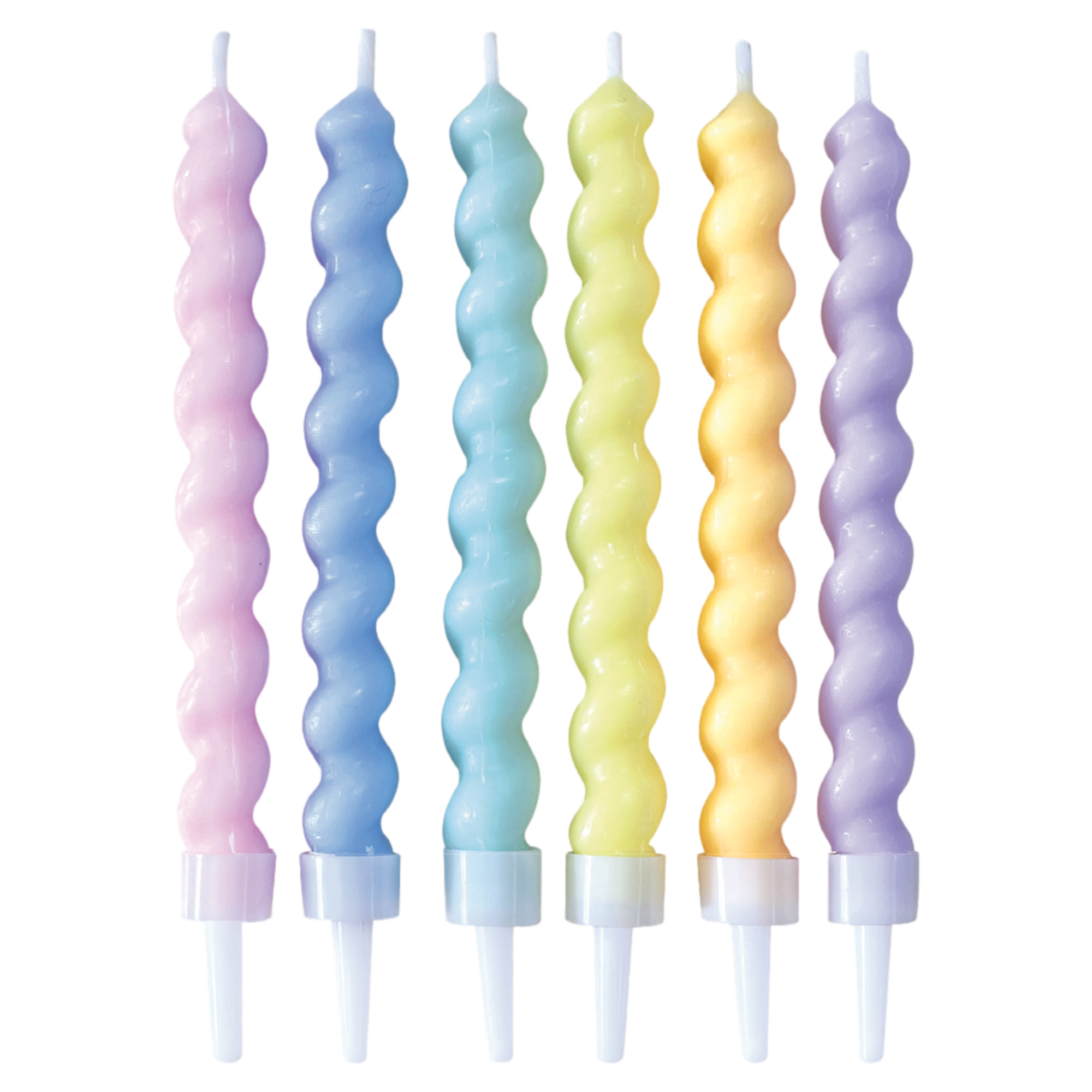 Rendi ogni festa ancora più speciale con questo set di sei candele colorate e pastello. L'elegante forma attorcigliata e i tenui colori pastello conferiscono un aspetto festoso ed elegante a qualsiasi torta. Realizzate in cera, consentono di posizionarle in modo sicuro e protetto sulla torta. Perfette per compleanni, anniversari o altre occasioni di festa. La confezione contiene 6 candele pastello attorcigliate in cera