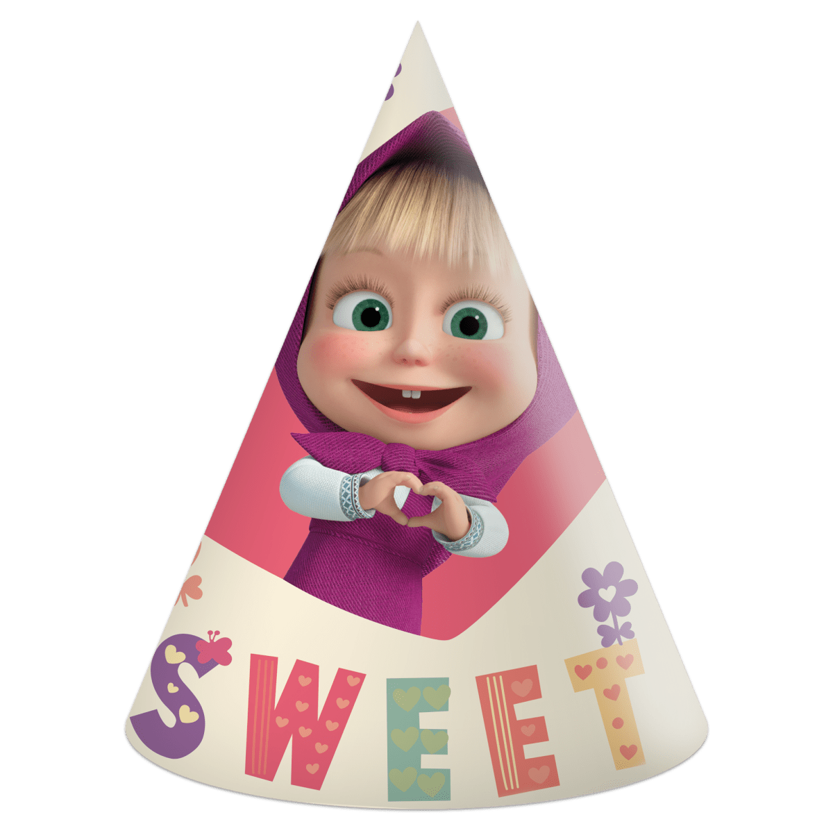 Cappelli da festa Masha e l'Orso colorati 6 pezzi