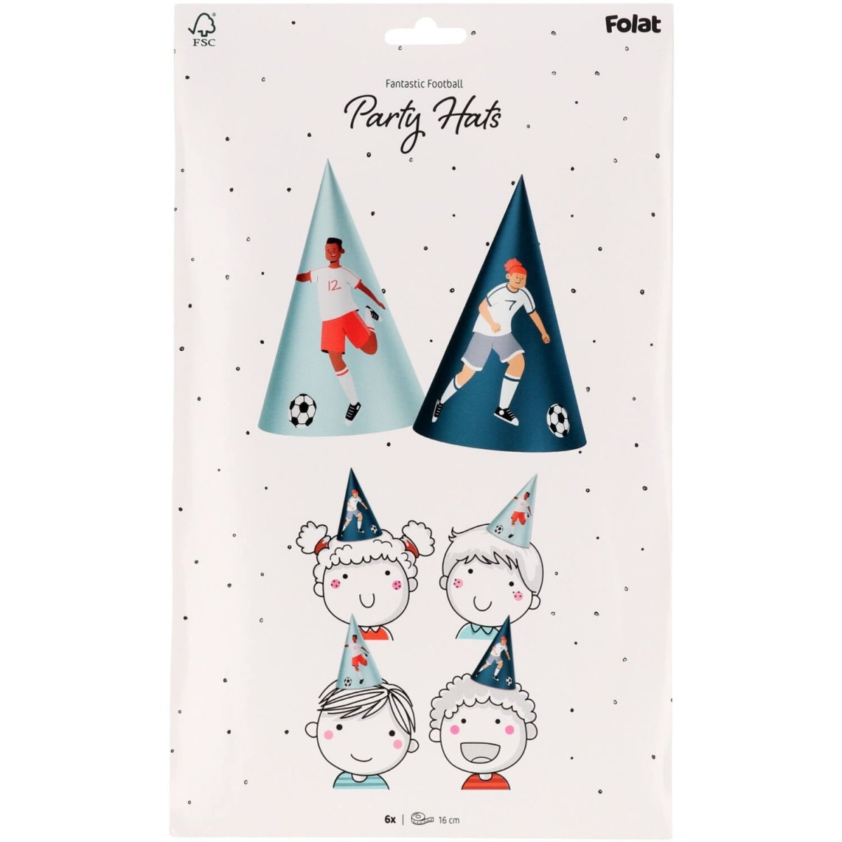 Calcio! Cappelli da festa - Calcio Fantastico - 6 pezzi. Contenuto: 6 cappelli da festa. Da utilizzare, ad esempio, durante le seguenti feste/occasioni di festa: Festa per bambini, Compleanno, Calcio. Questi allegri cappelli da festa sono alti 16 cm. Ci sono due modelli: uno grigio scuro con un calciatore e uno azzurro con un calciatore. I cappelli sono confezionati in modo piatto e possono essere facilmente ripiegati in un cappello. Grazie agli elastici, i cappelli rimangono saldamente sulla testa. Questo articolo è realizzato in carta.