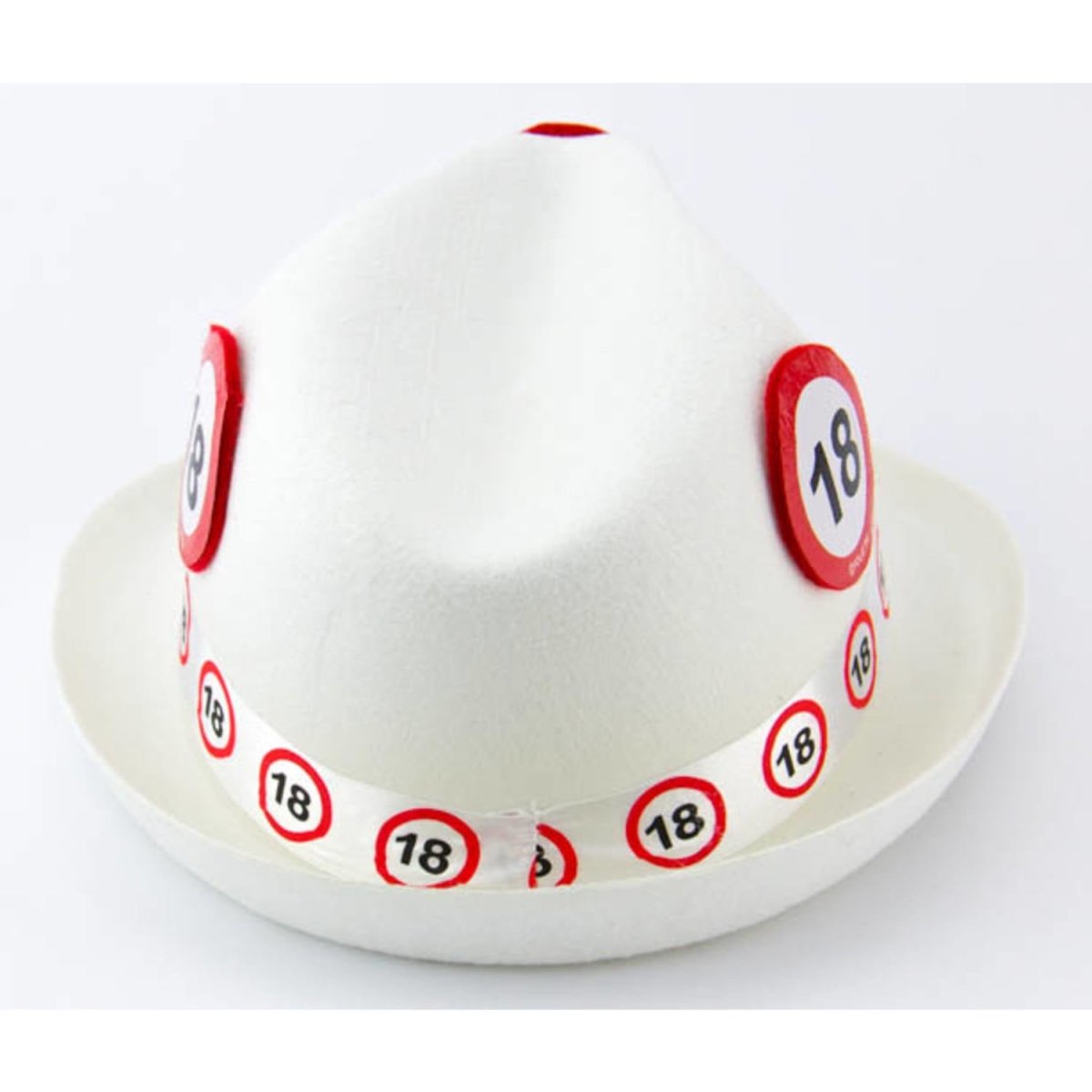 Segnale stradale cappello trilby bianco 18 anni. Contenuto: 1 cappello, colore: bianco. Da utilizzare ad esempio durante le seguenti occasioni di festa: Carnevale, Festa a tema, Halloween. Questo cappello misura 23 cm di larghezza e 37 cm di altezza. L'articolo è realizzato in poliestere