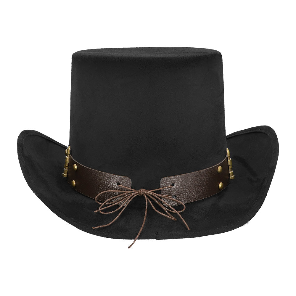 Completa il tuo look steampunk industriale con l'impressionante cappello Bulletpunk. Questo elegante cappello a cilindro ha un lussuoso aspetto scamosciato ed è rifinito con una robusta fascia in pelle ricca di dettagli metallici - tra cui un'aquila e borchie a forma di proiettile - per un look steampunk retro-futuristico inconfondibile. Grazie alla fascia interna elasticizzata, il cappello ha una vestibilità comoda e rimane in piedi durante qualsiasi festa.