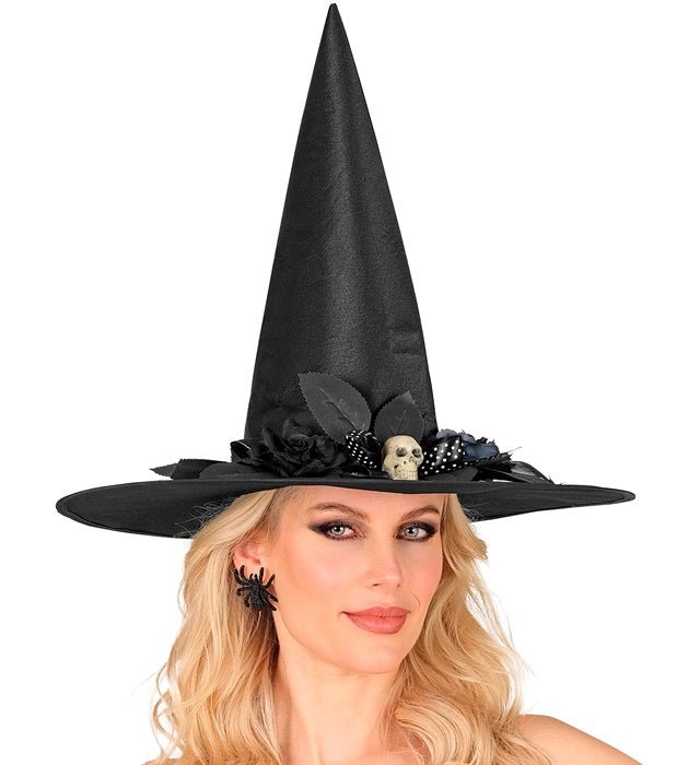 Cappello da strega nero con teschio
