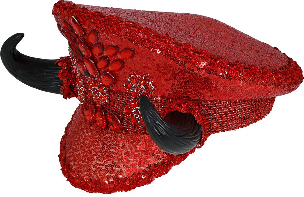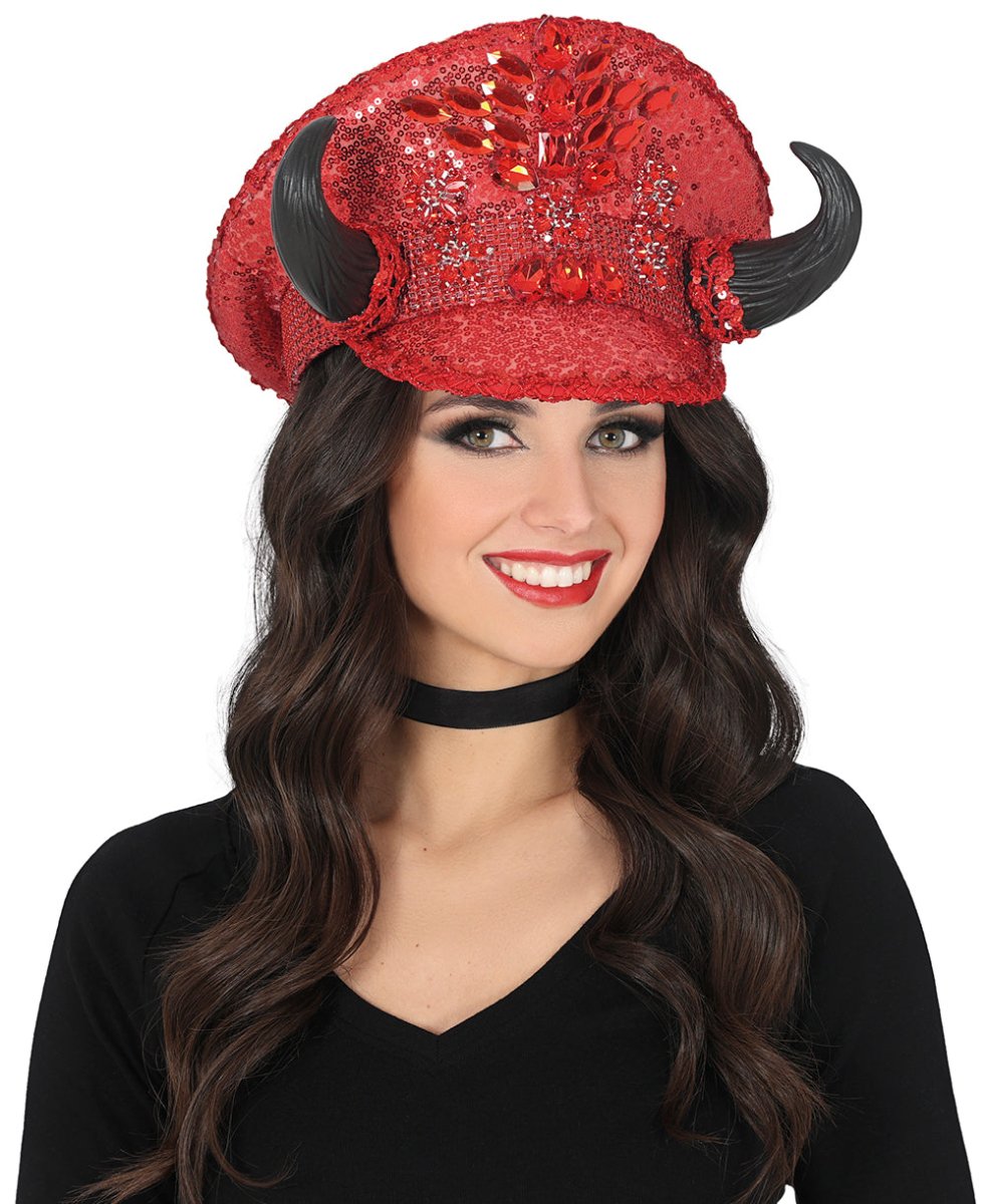 Dai un tocco diabolico al tuo costume di Halloween con questo berretto da poliziotto rosso con corna. La combinazione di rosso e nero crea un look fresco e giocoso, ideale per feste a tema e feste in costume.