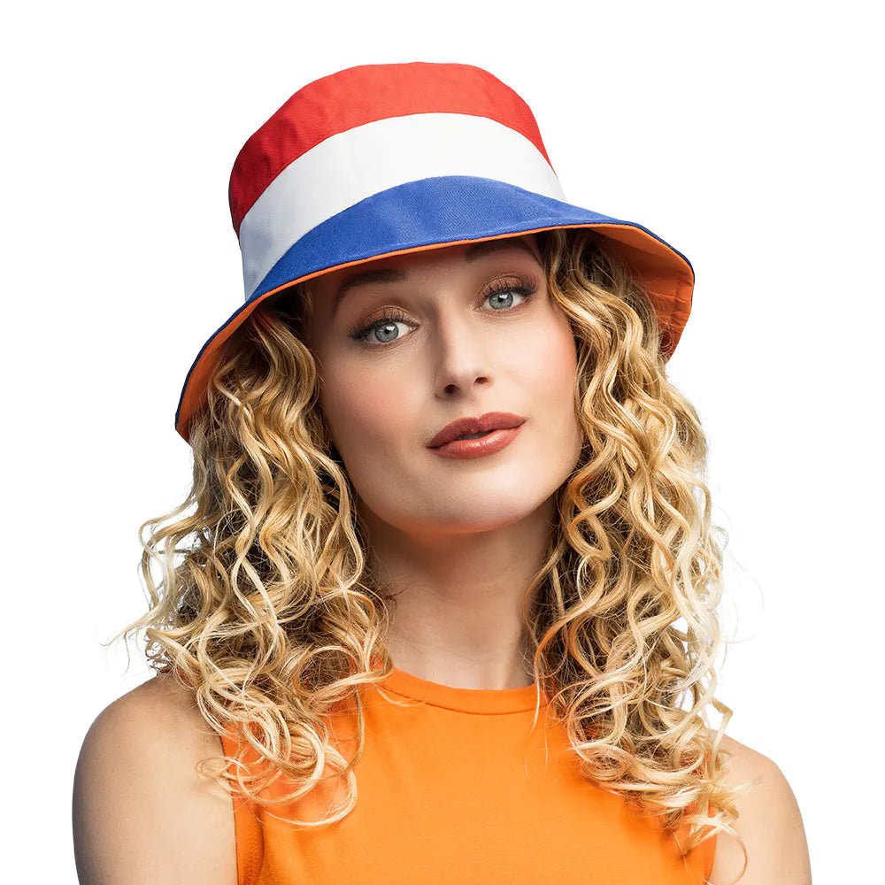 Il Bucket hat Holland è un cappello elegante e pratico in rosso-bianco-blu che ti permette di apparire in pieno spirito olandese. Ideale per il Giorno del Re, le competizioni sportive e i festival, grazie alla sua vestibilità comoda e ai materiali leggeri.