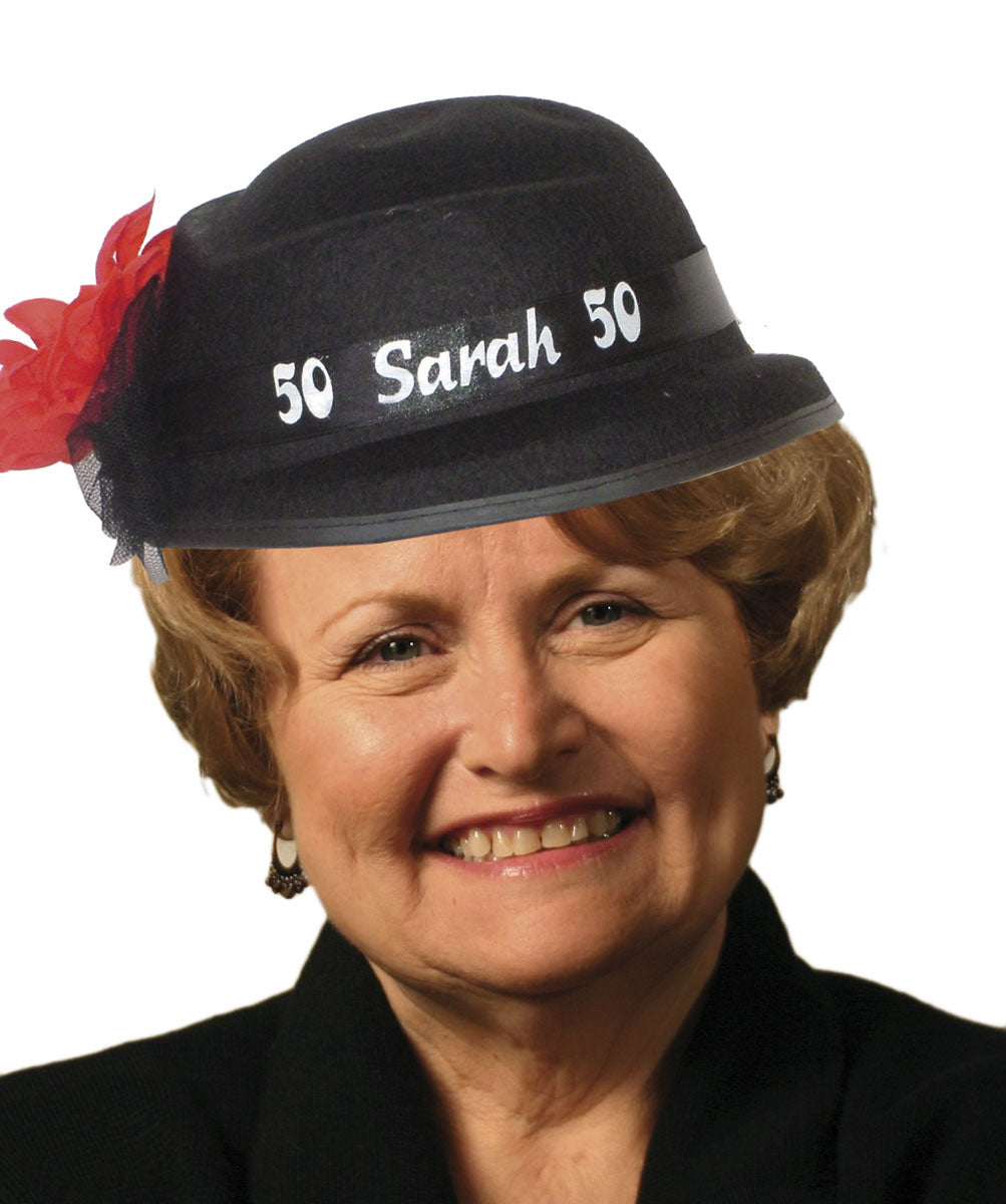 50 Anni Sarah Cappello a Bombetta con Fiore. Contenuto: 1 cappello. Da utilizzare, ad esempio, durante le seguenti occasioni di festa: Compleanno, Sarah. Misura del cappello: 59 cm. L'articolo è realizzato in feltro.