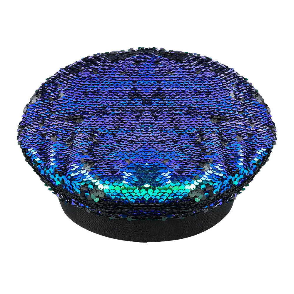 Completa il tuo look da festival con questo accattivante cappello nero/blu con paillettes reversibili. Passando il ferro da stiro sulle paillettes, queste passano dal nero al blu/verde metallizzato e viceversa. Anche per il carnevale o il Pride, questo cappello bling bling è l'accessorio perfetto. Che la festa abbia inizio!