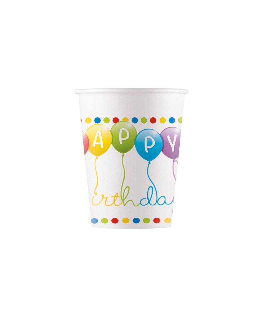 Bicchiere di carta Happy Birthday 200ml 8 pezzi