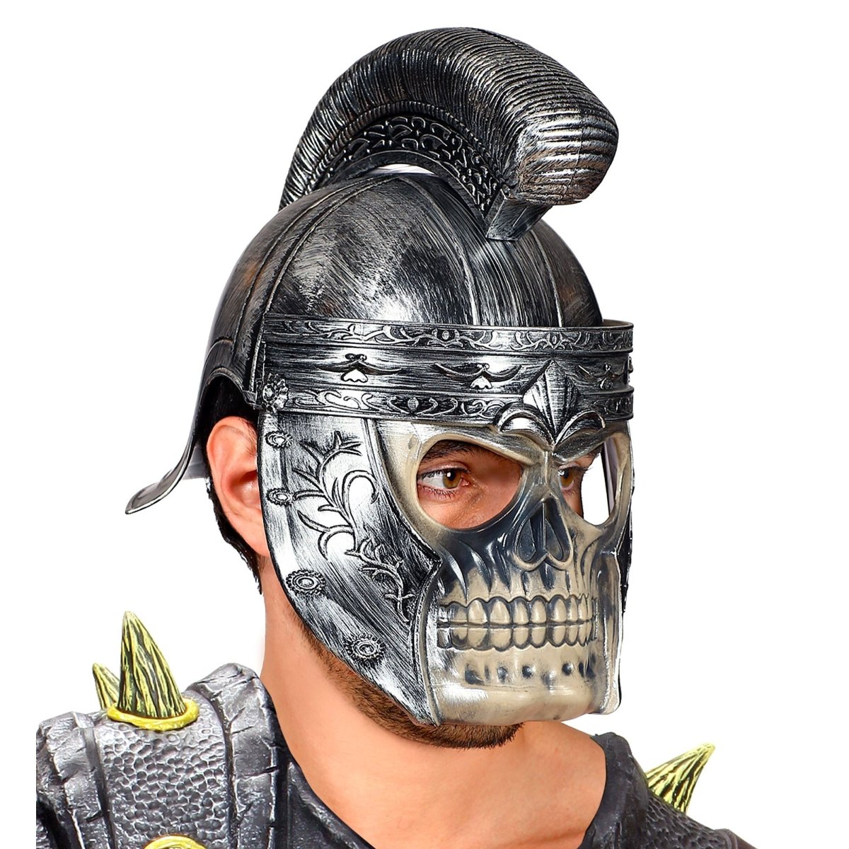 Completa il tuo inquietante costume da romano con questo elmo argentato con dettagli da teschio. Perfetto per Halloween, feste a tema o in maschera