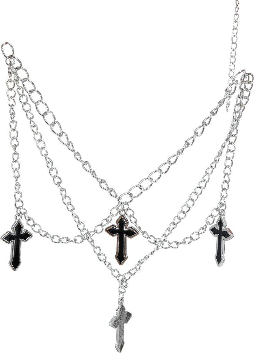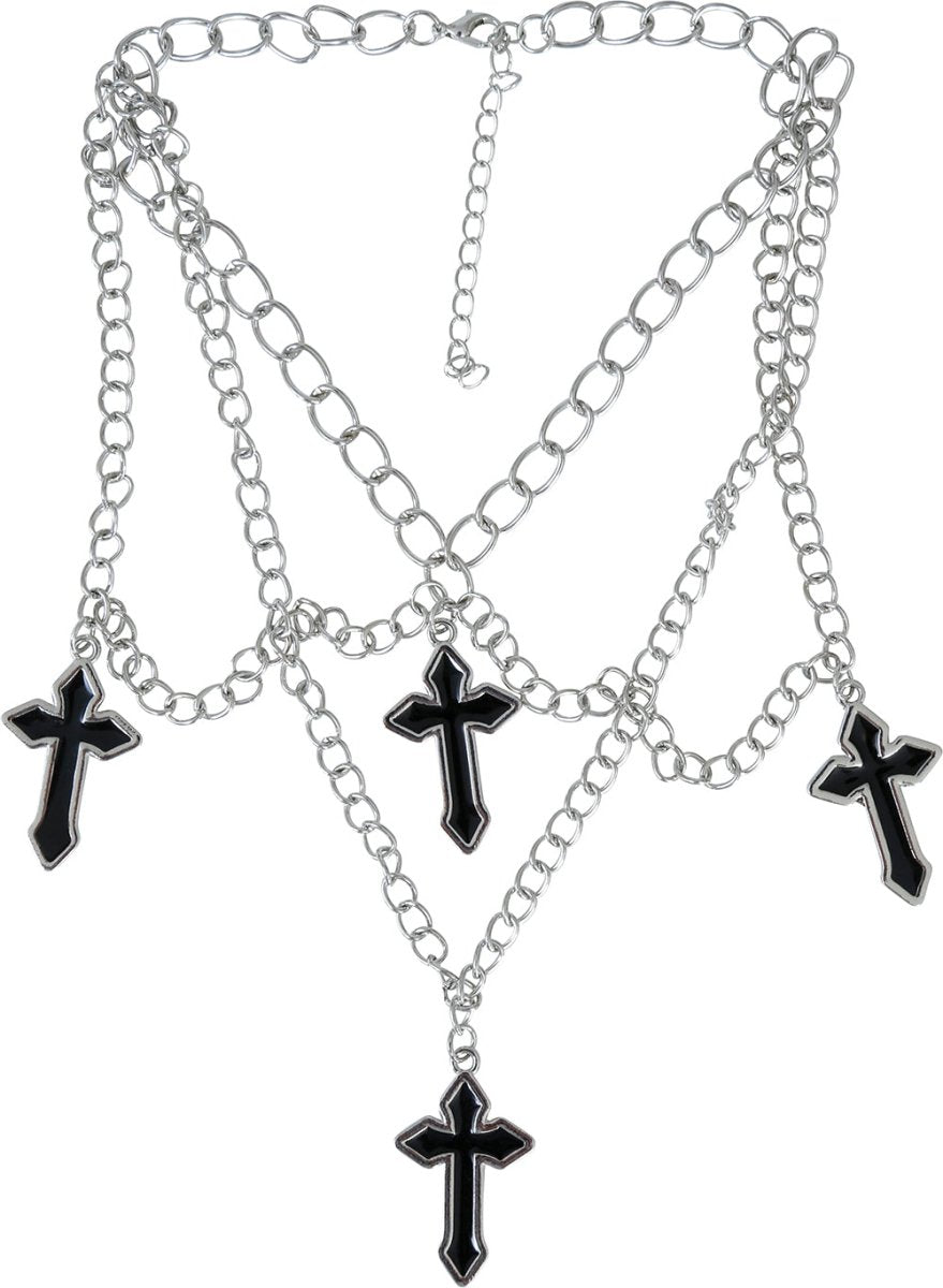 La collana a quattro croci è realizzata in metallo resistente e ha una finitura argentata lucida. Il design sottile e accattivante dei ciondoli a forma di croce rende questo gioiello adatto sia all'uso quotidiano che alle occasioni speciali. Indossalo come una dichiarazione di moda o come un simbolo con un significato personale.
