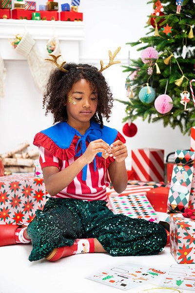 Cerchietto in metallo Renna con corna in tessuto color oro, dimensioni circa 34,5 x 22 cm