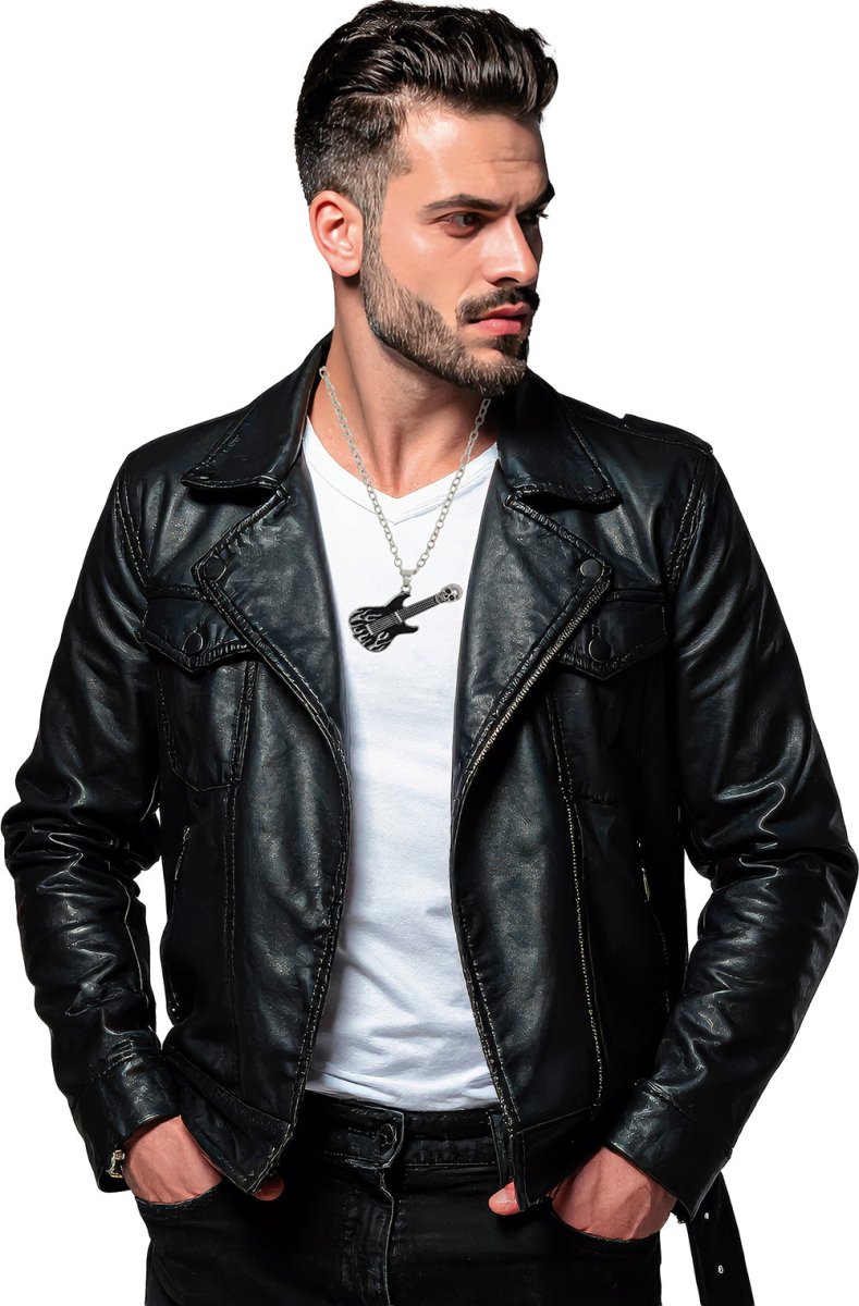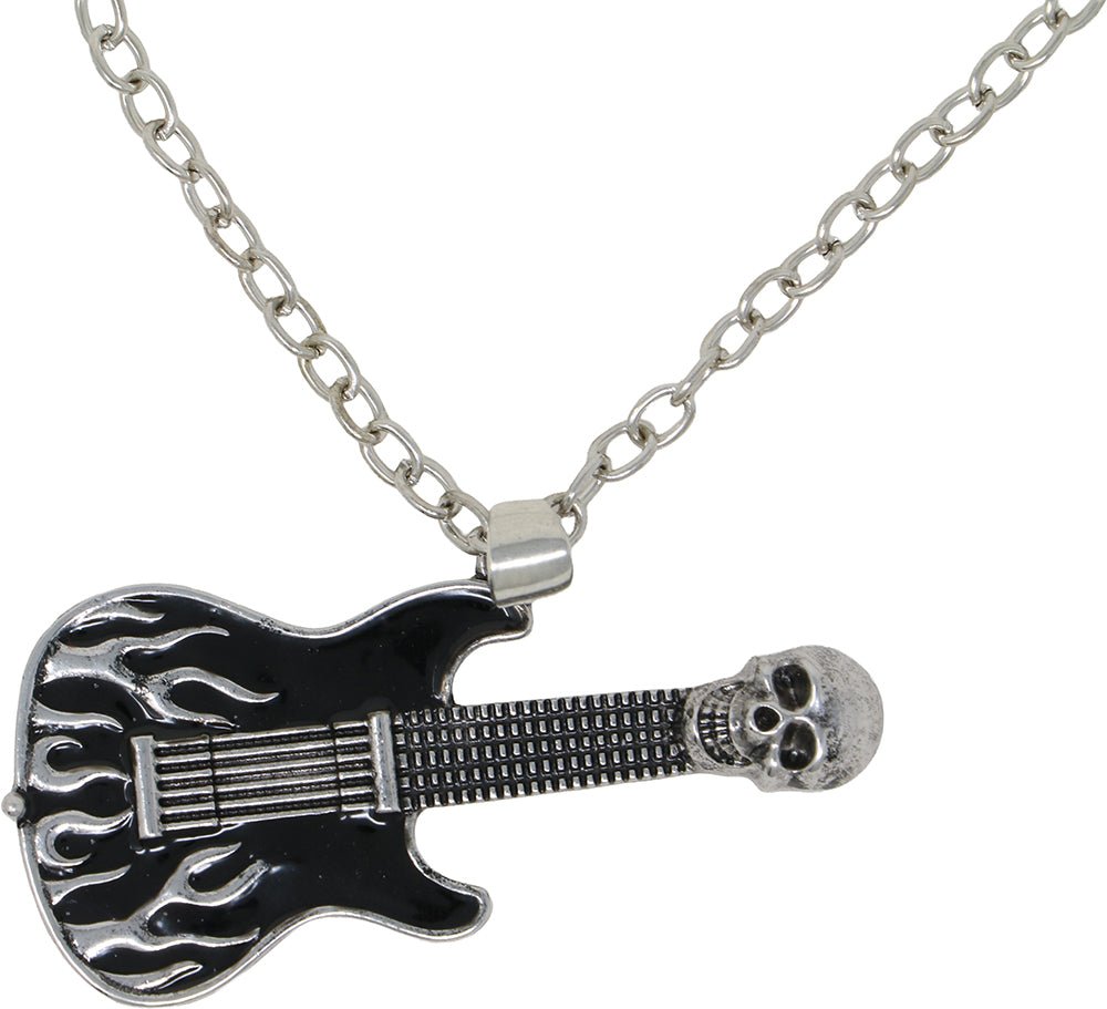 Mostra il tuo lato musicale con questa elegante collana con ciondolo a forma di chitarra elettrica. La finitura nera e argento conferisce alla collana un look fresco e moderno, perfetto per gli appassionati di musica, i festival o le feste a tema. Realizzata in metallo resistente, è comoda da indossare sia con disinvoltura che come accessorio accattivante per un costume